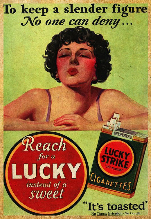“To keep a slender figure no one can deny, reach for a Lucky instead of a sweet” – Lucky Strike slogan