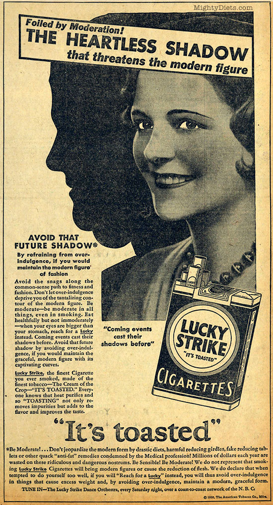 Vintage Lucky Strike ads – Smoking for Weight Loss: “Avoid that Future Shadow”