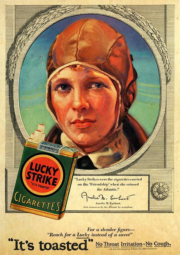 - Amelia Earhart says, \”for a slender figure reach for a Lucky\”